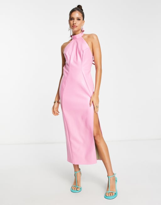 ASOS DESIGN halter PU midi dress in croc effect PU in pink Very well made.