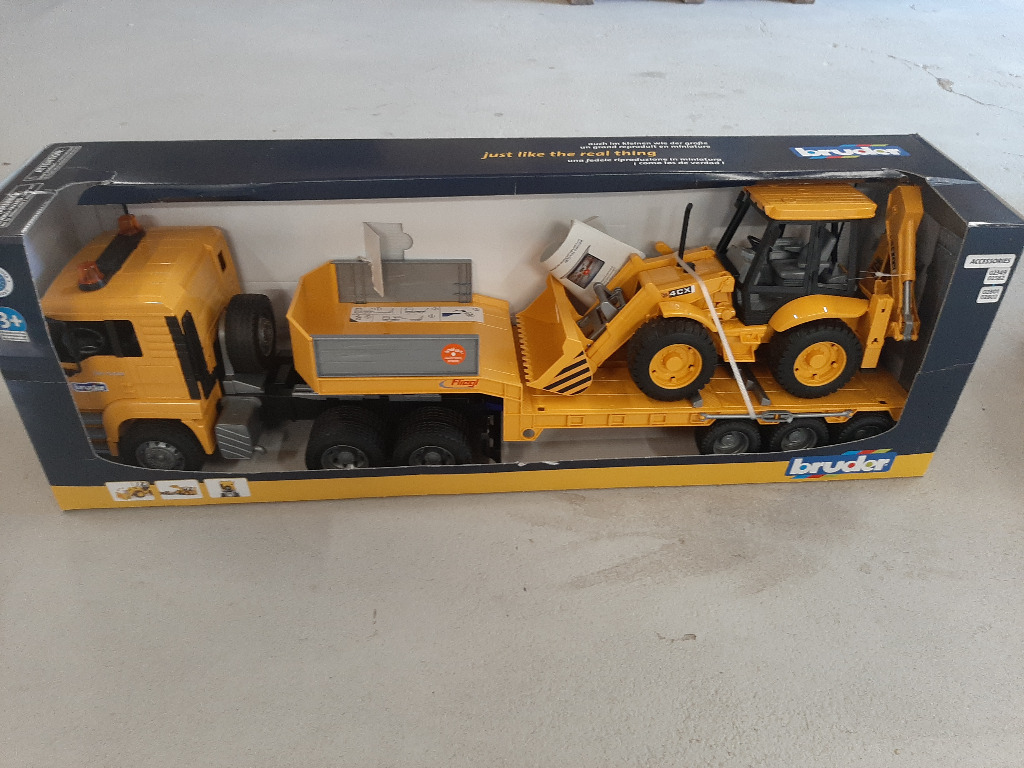Bruder Toys MAN TGA Low Loader w.JCB Backhoe Loader 02776 Very well made.