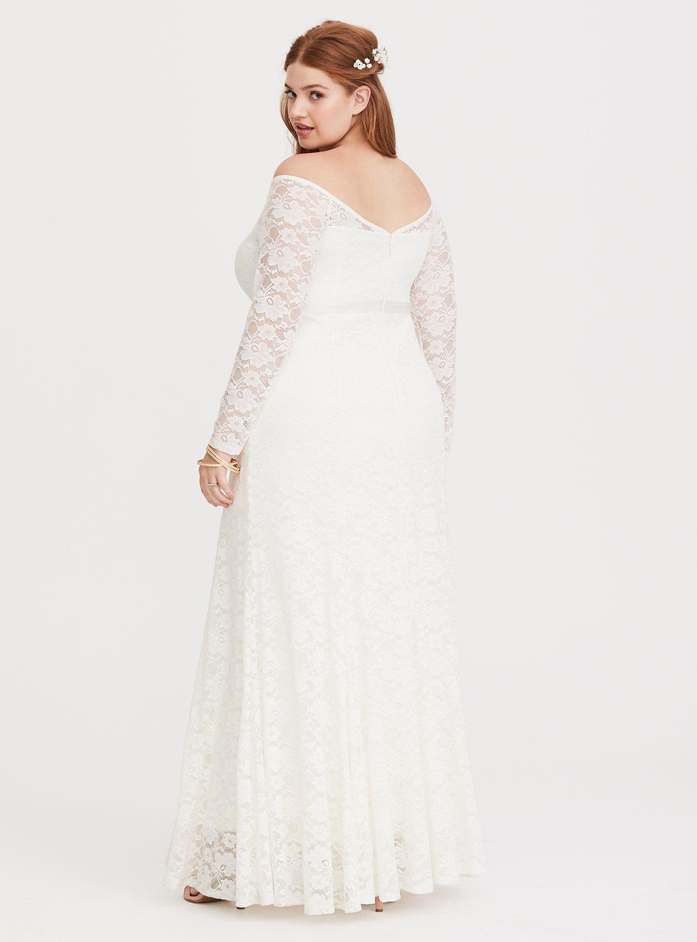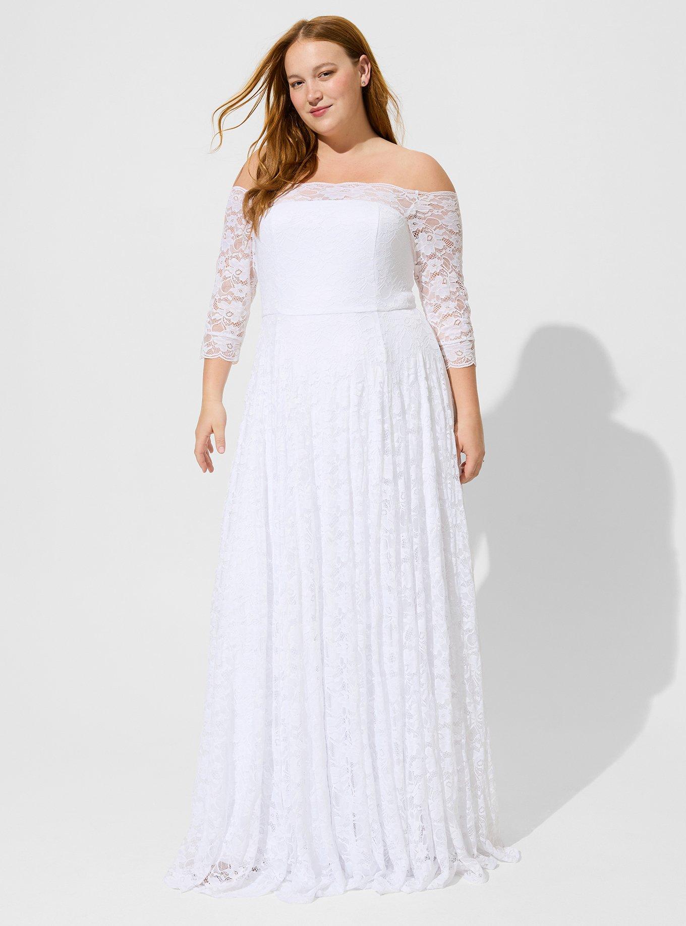 Plus Size White Lace Off Shoulder A Line Wedding Dress Torrid Very well made.