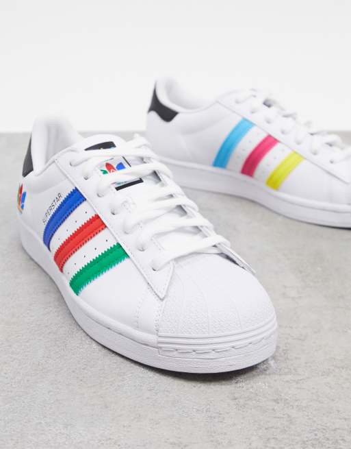 adidas Originals superstar sneakers with multicolour trefoil in white Very well made.