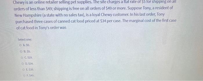 Solved Chewy is an online retailer selling pet supplies. The Very well made.