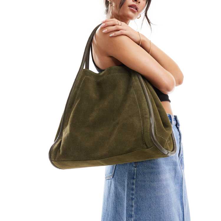 ASOS DESIGN suede tote bag with tubular piping in forest green ASOS Very well made.