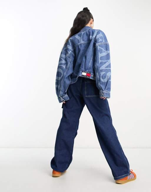Tommy Jeans oversized flag logo denim jacket in mid wash Very well made.
