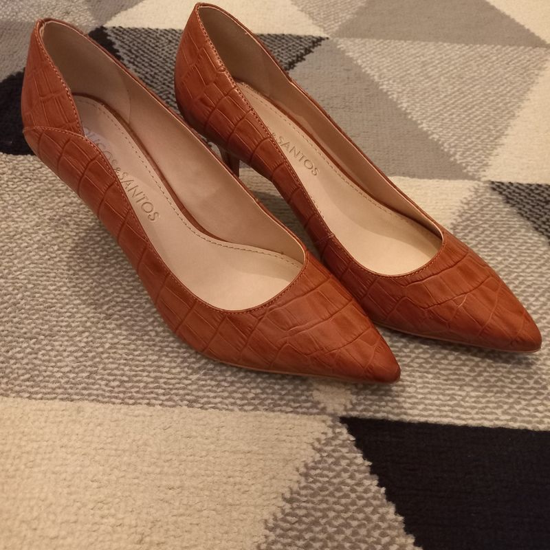 Scarpin Loucos e Santos Croco Caramelo Salto Fino 6 Cm Couro Very well made.