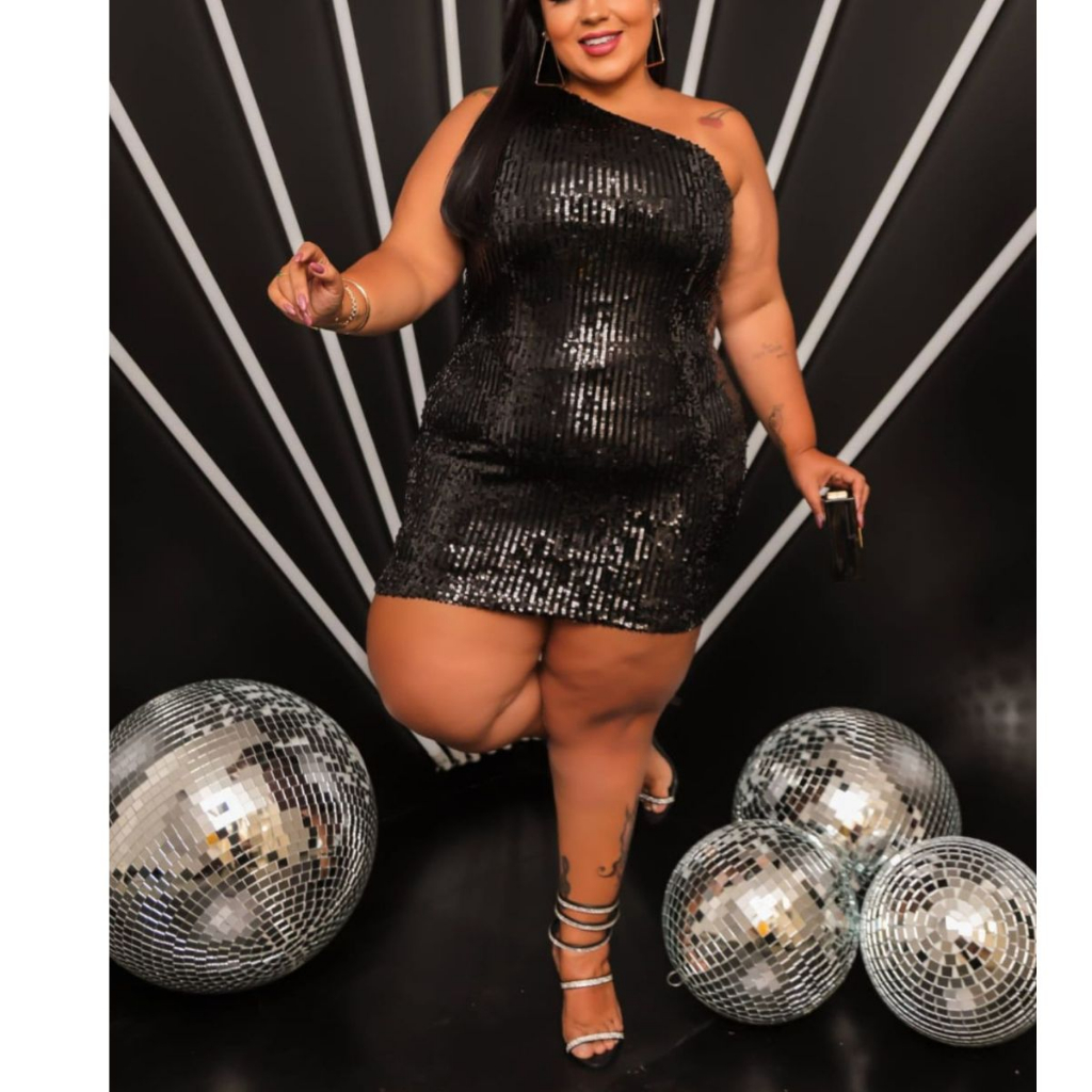 VESTIDO PAET um ombro manga nula luxo plus size Very well made.