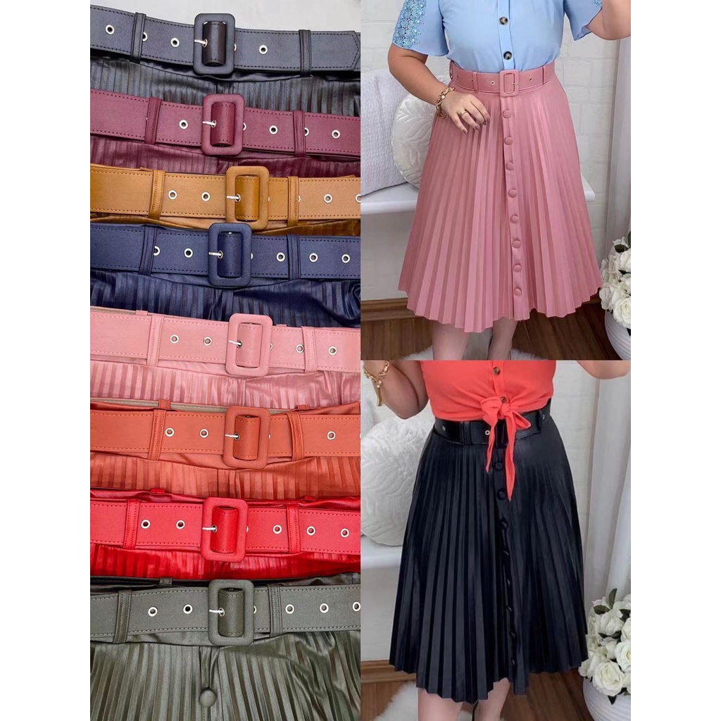 Saia Midi PLISSADA DE CIRRE COM BOTAO COM CINTO FIVELA MODA Very well made.