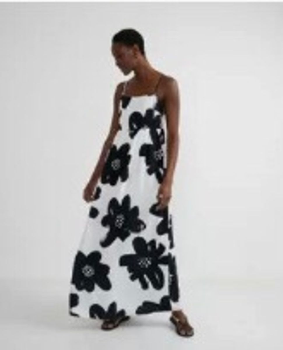 Vestido Longo Sem Manga em Viscolinho com Estampa Abstrata Preto Very well made.
