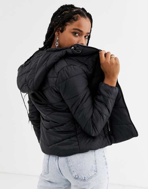 Bershka cropped padded puffer jacket in black Very well made.