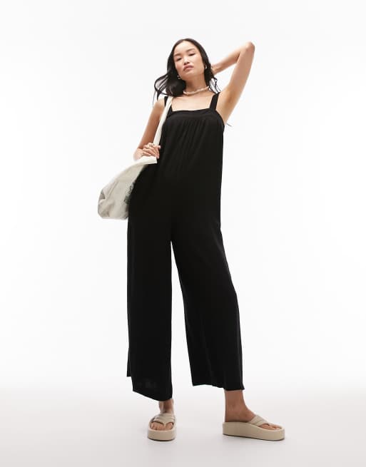 Topshop linen square neck romper jumpsuit in black Very well made.