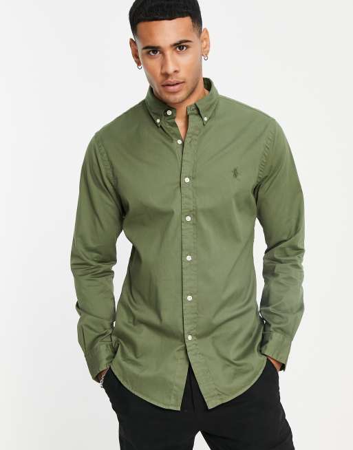 Polo Ralph Lauren icon logo slim fit poplin shirt in olive green Very well made.