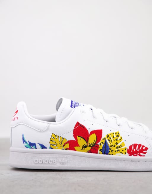 adidas Originals Stan Smith trainers in white with floral detail WHITE Very well made.
