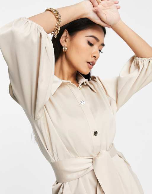 River Island satin tie waist shirt in beige Very well made.