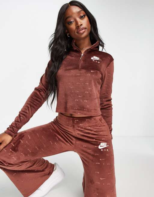Nike Air long sleeve velour top in burgundy with all over swoosh Very well made.