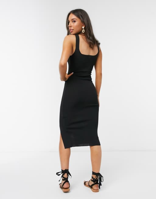 Pimkie square neck tight midi dress in black Very well made.