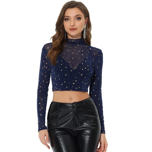 Allegra K Women s Mesh Crop Top Stars Mock Neck Halloween Party Very well made.