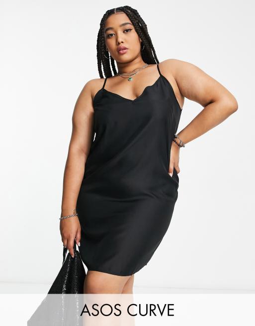 ASOS DESIGN Curve v neck mini slip dress in black Very well made.