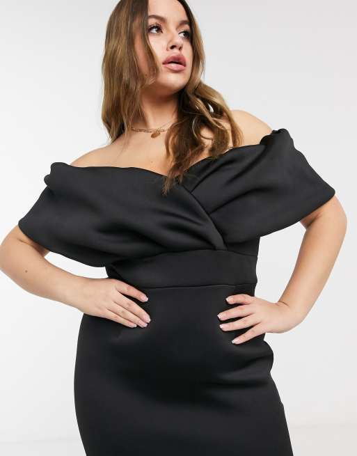 True Violet Plus bardot off shoulder peplum midi dress in black ASOS Very well made.