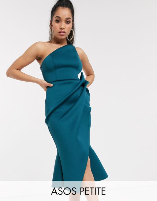 ASOS DESIGN Petite one shoulder tucked peplum pencil midi dress in teal Very well made.
