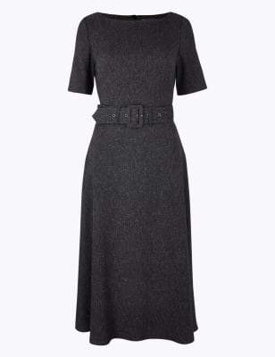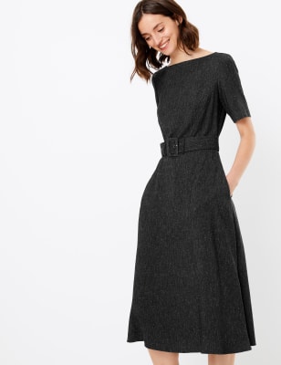 Belted Herringbone Fit Flare Midi Dress M S Collection M S Very well made.