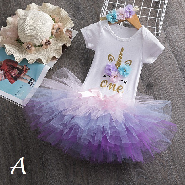 Ready Stock Baby Girl Unicorn Party 1st Birthday Outfits Dress Sets Rainbow Tutu Kids Clothes 1 Year Old Baby Birthday Very well made.