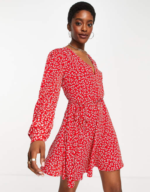 Glamorous tie waist swing dress in red ditsy floral Very well made.