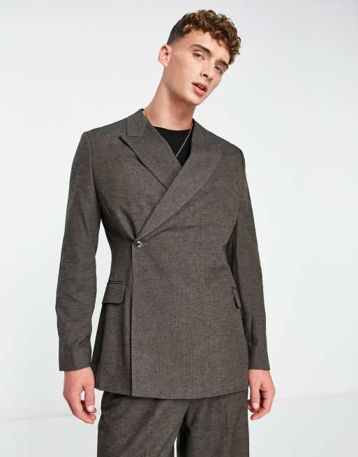 ASOS DESIGN slim wrap suit jacket in brown twill Very well made.
