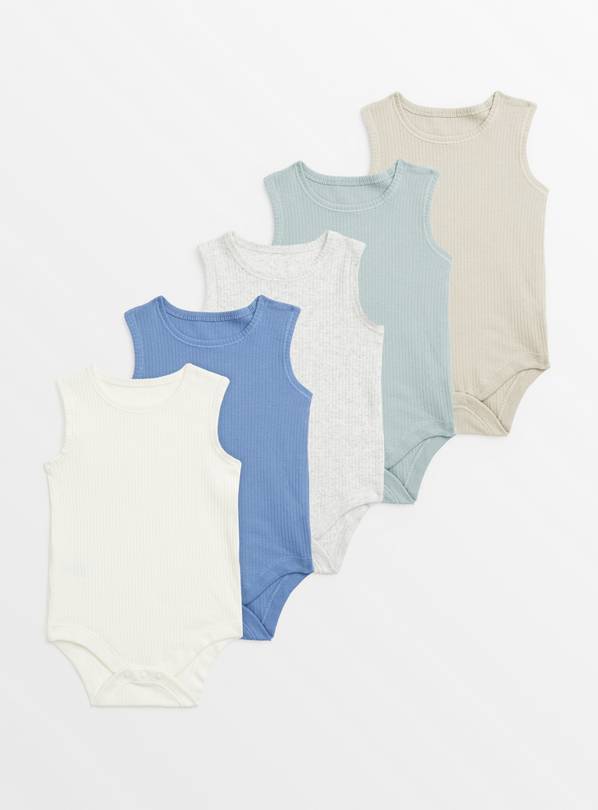 Buy Blue Ribbed Bodysuit 5 Pack Tiny Baby Bodysuits Tu Very well made.