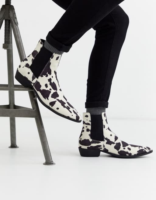ASOS DESIGN cuban heel western chelsea boots in faux suede cow print Very well made.
