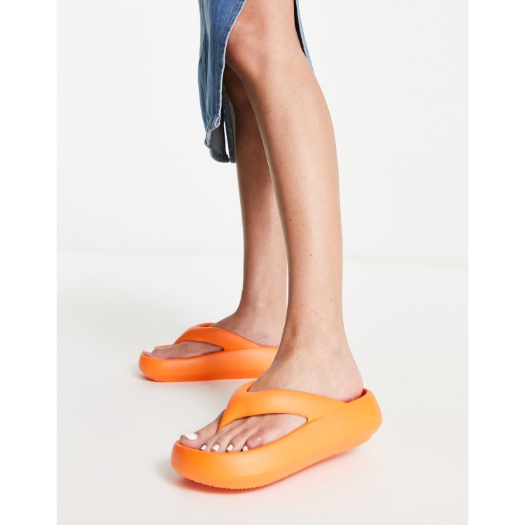 Tammi Thong Strap Flatform Flip Flop Sandal Slides in Orange Synthetic Leather Very well made.