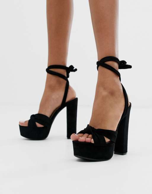 Glamorous Exclusive black knot detail ankle tie platform sandals Very well made.