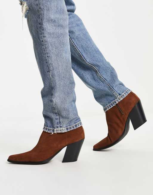 ASOS DESIGN Region suede mid heel boots in tan ASOS Very well made.