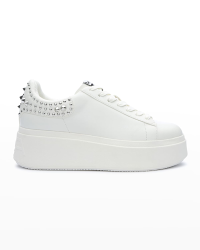 Ash Moby Stud Bicolor Leather Platform Sneakers In White white Very well made.