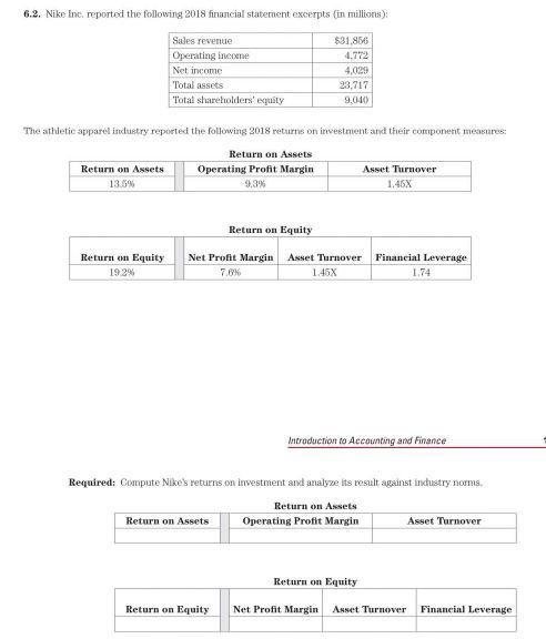 Solved 6.2. Nike Inc. reported the following 2018 financial Very well made.