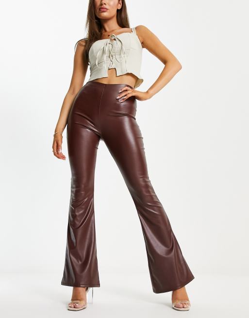 ASOS DESIGN leather look kick flare in chocolate Very well made.