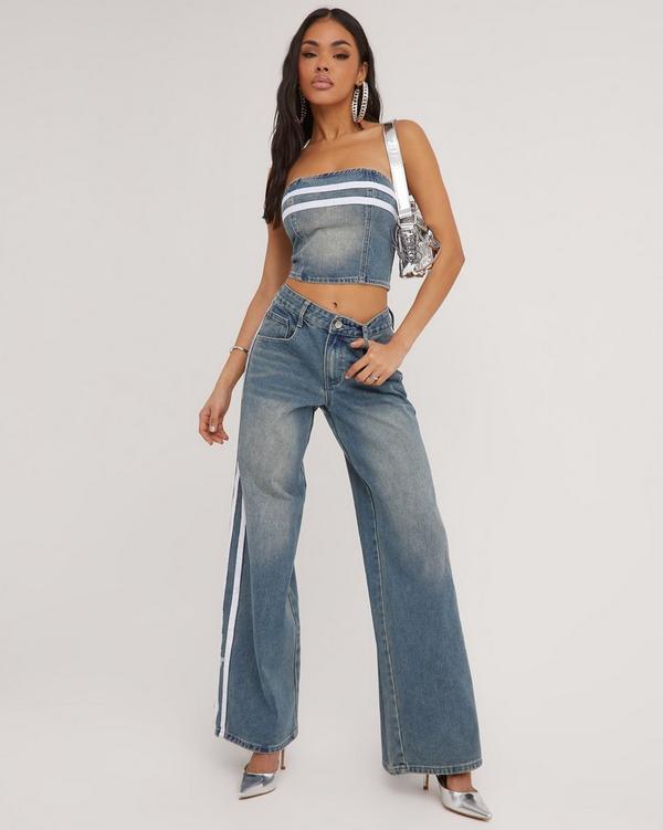 Mid Rise Contrast Stripe Detail Wide Leg Jeans In Blue Vintage Very well made.