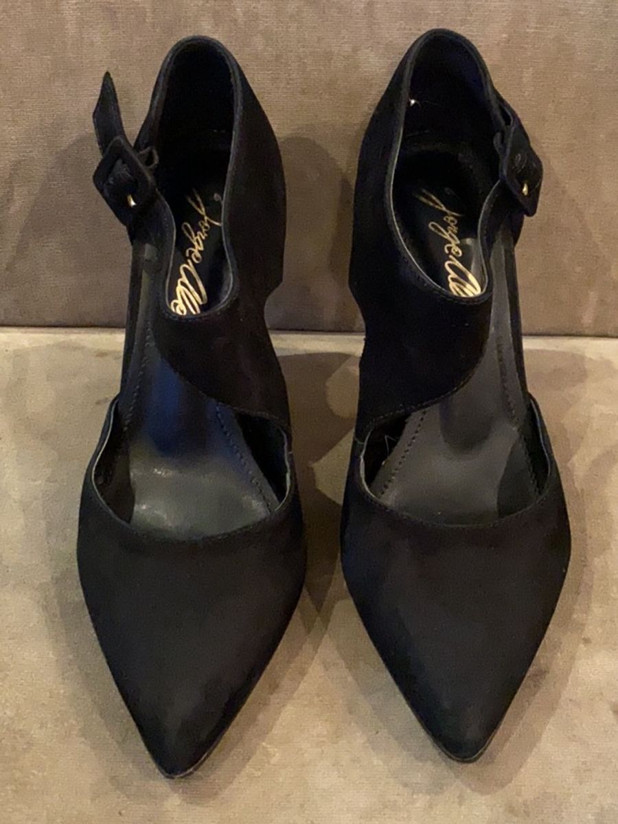 Salto Alto Fino de Veludo Preto e Ponta Fina Fechado No Meio Very well made.