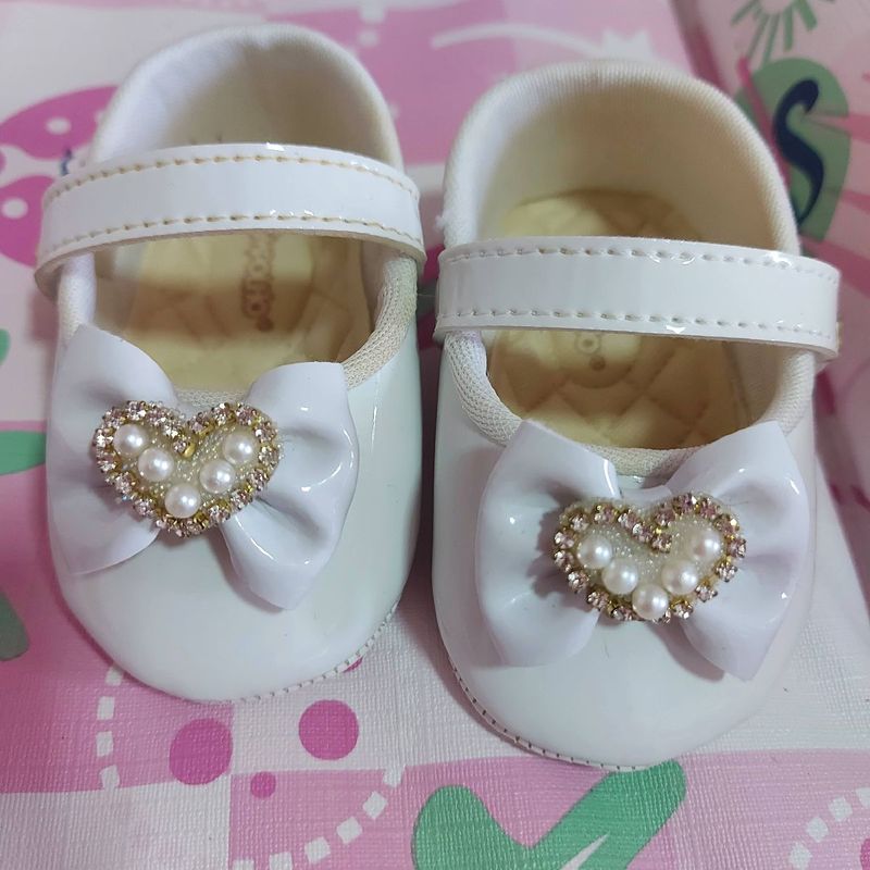 Sapato Infantil Feminino Flores Branco Batizado Pimpolho Submarino Very well made.