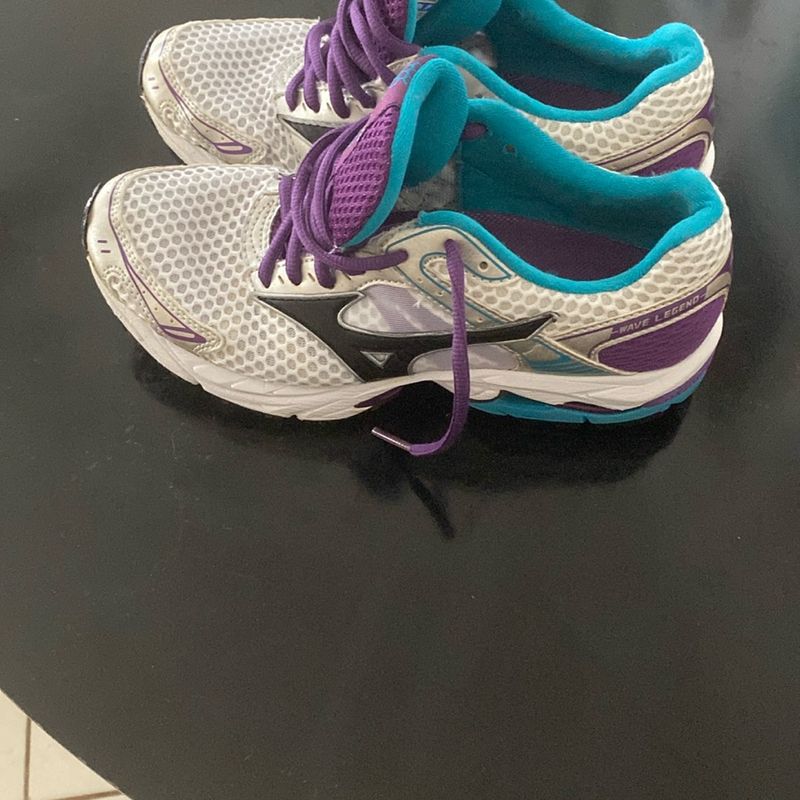 T nis Mizuno Cinza com Detalhes em Preto Roxo e Verde T nis Very well made.