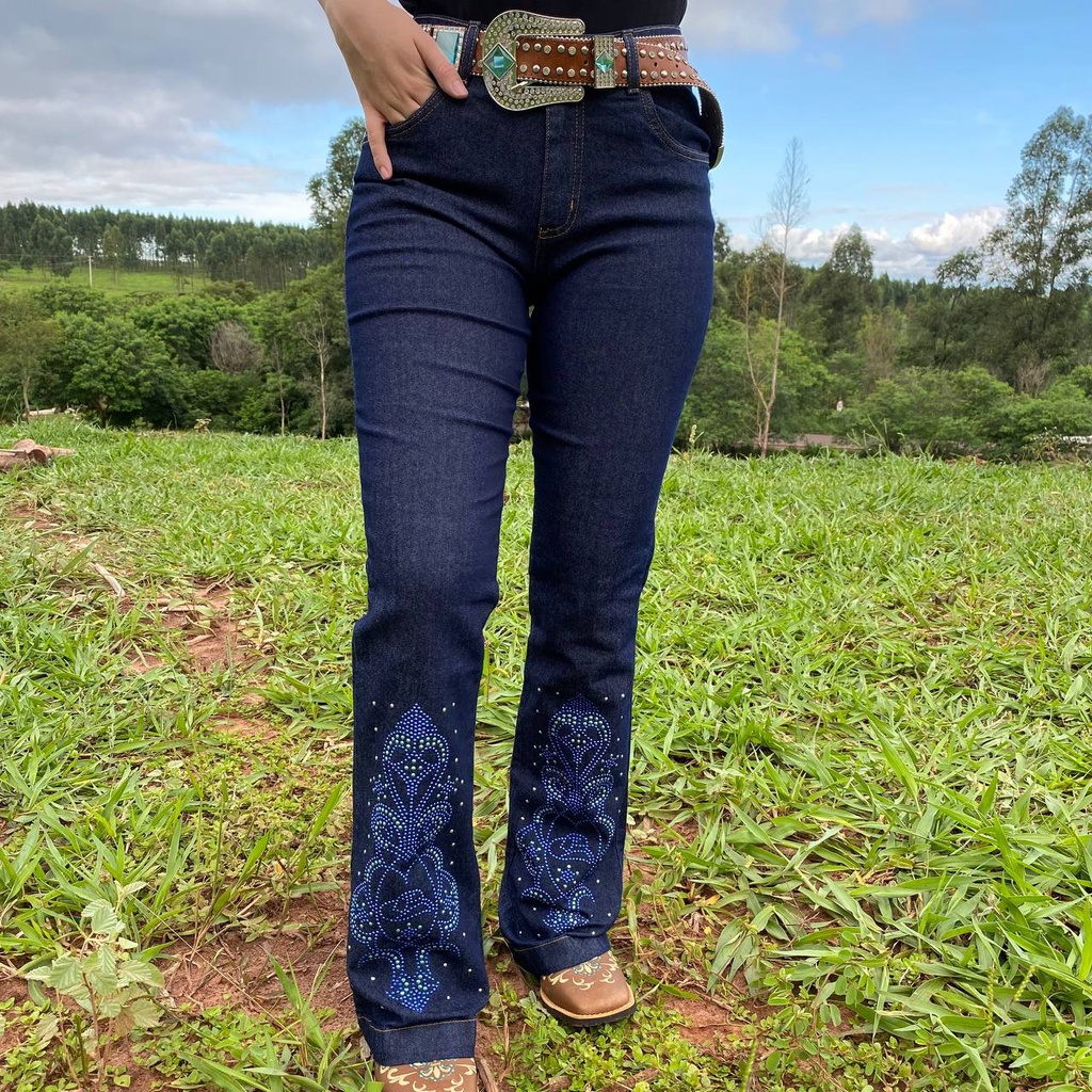 Cal a Jeans Feminina Moda Country Com Pedraria Bordada Rodei Very well made.