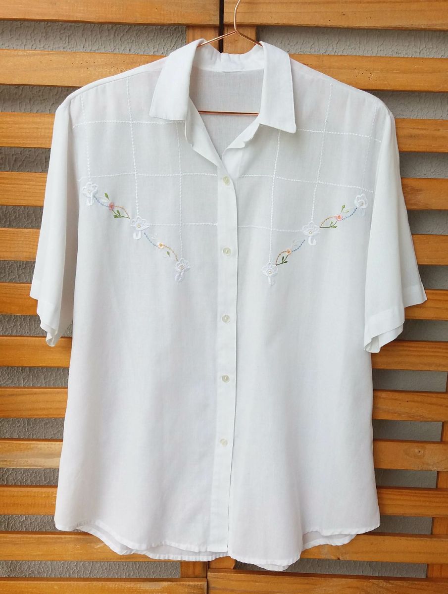 Camisa Vintage em Cambraia Branca com Ombreiras e Busto Bordado Manga Curta Camisa Feminina Usado 64136604 enjoei Very well made.