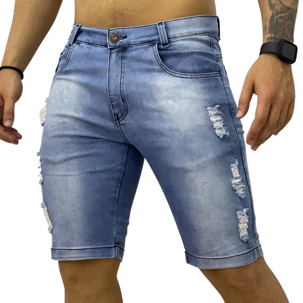 Bermuda Jeans Masculina Destroyed Slim rasgada Azul escuro com Very well made.