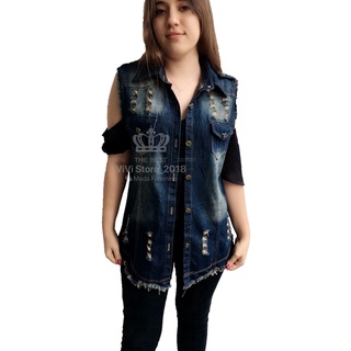 Colete Jeans Feminino Longo Moda Desfiado Pronta Entrega Very well made.