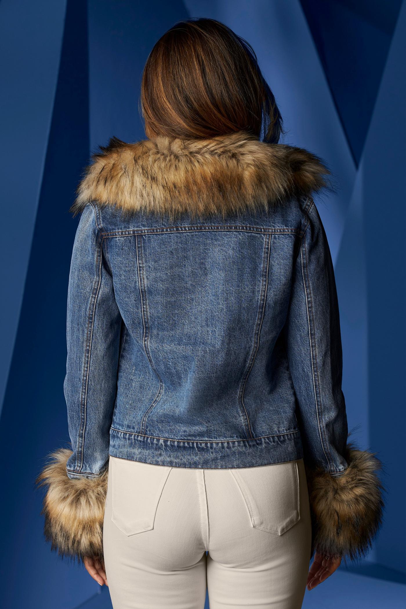 Removable Faux Fur Trim Denim Jacket Medium Wash Very well made.