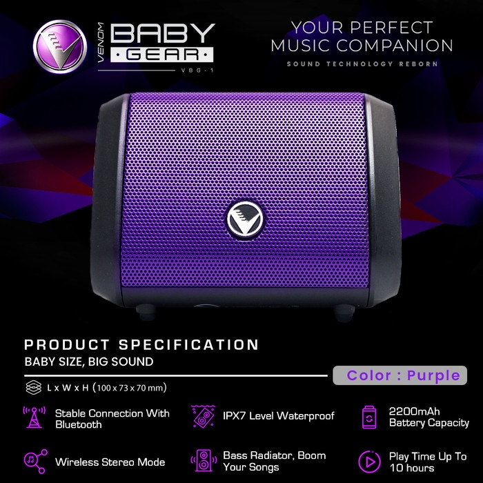 Jual SPEAKER VENOM BABY GEAR VBG 1 SPEAKER BLUETOOTH UNGU Very well made.