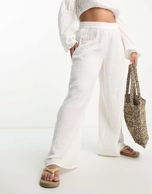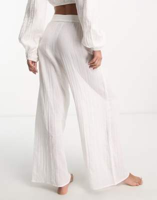 ASOS DESIGN wide leg beach trouser co ord in white gauze Very well made.