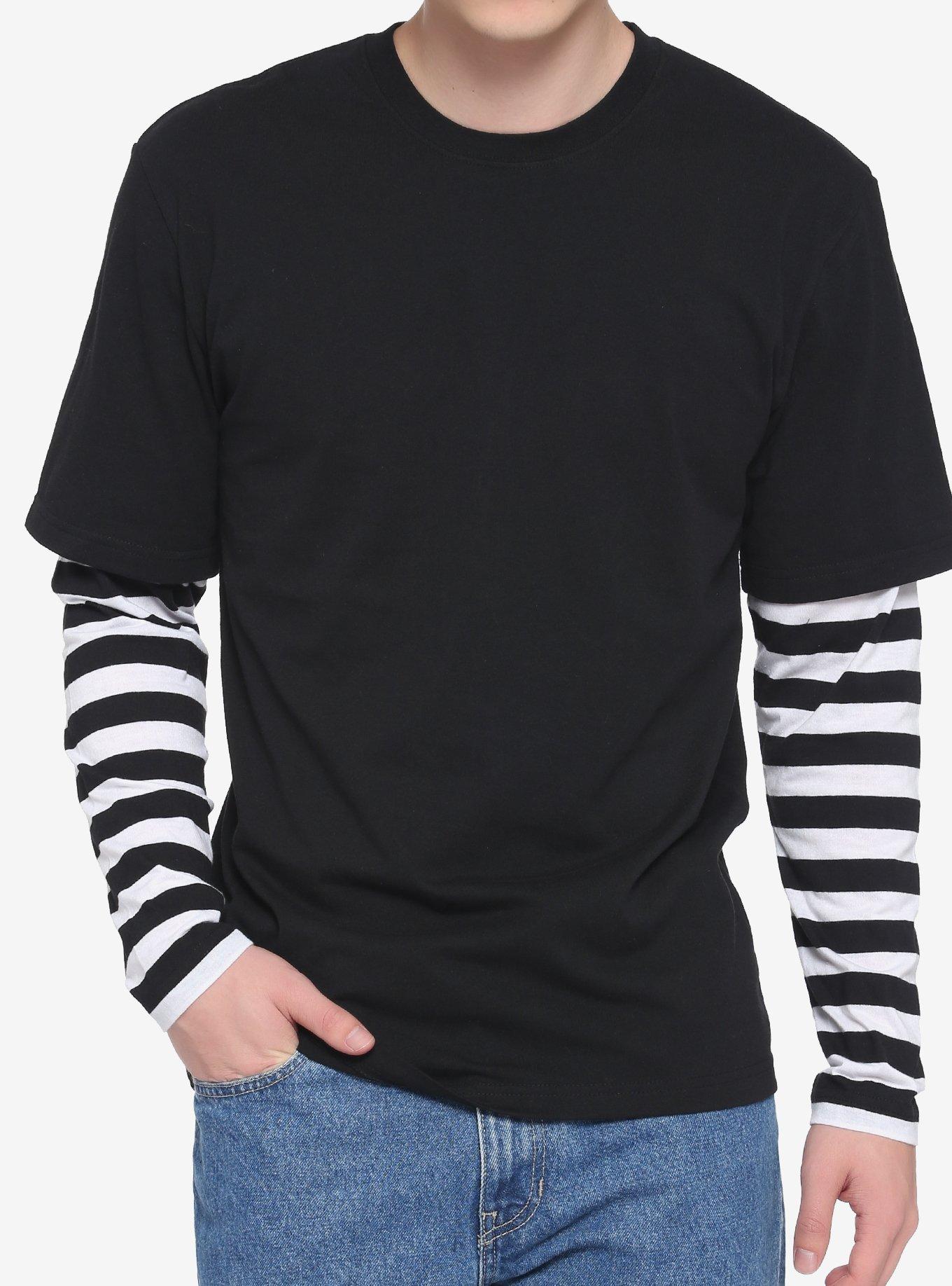 Black White Stripe Sleeves Shirt Long Sleeve Very well made.