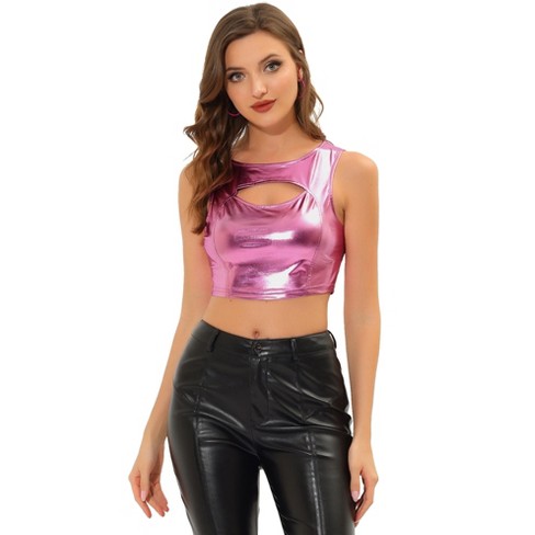 Allegra K Women s Metallic Crop Shiny Sleeveless Cut Out Party Holographic Tank Tops Hot Pink Large Very well made.