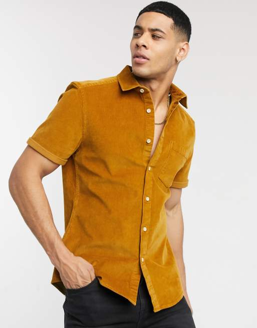 ASOS DESIGN short sleeve stretch slim cord shirt in mustard ASOS Very well made.