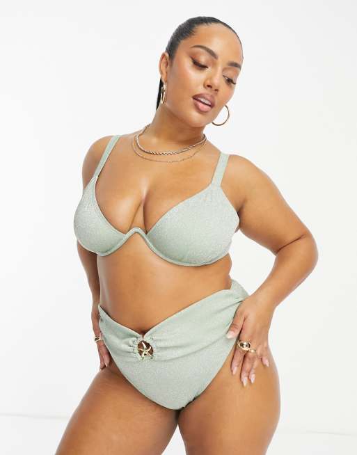 South Beach Curve underwire bikini top in sage green glitter Very well made.