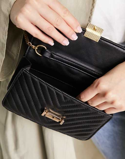 Truffle Collection quilted shoulder bag with chain strap in black Very well made.